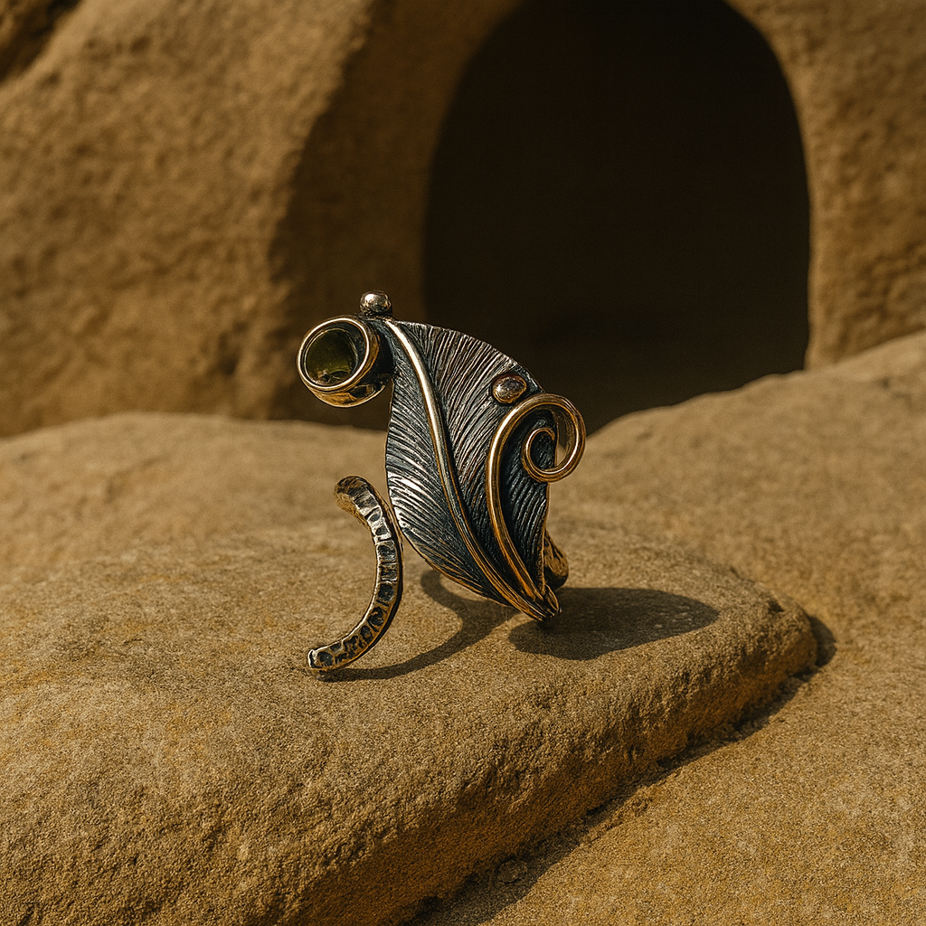 925 Ayar Gümüş Oval Zultanit Taşlı Yüzük – Bronz Kaplama Desenli El İşçiliği Tasarım